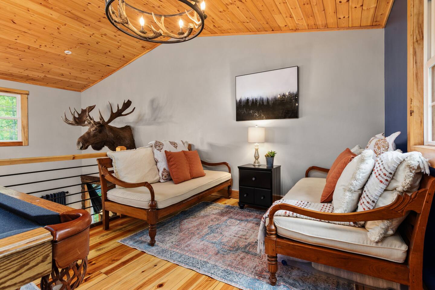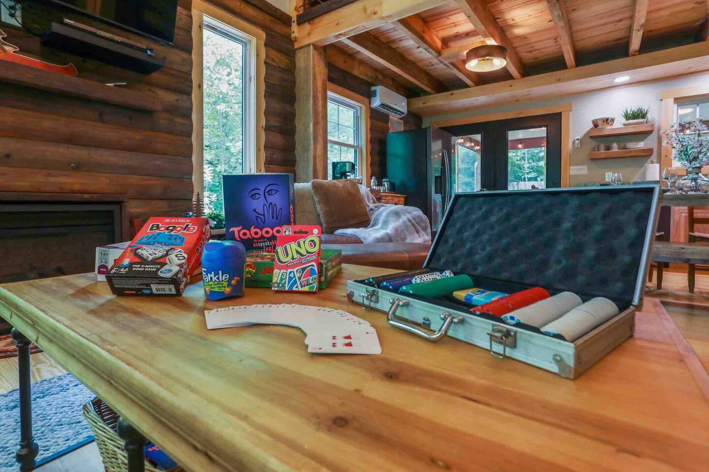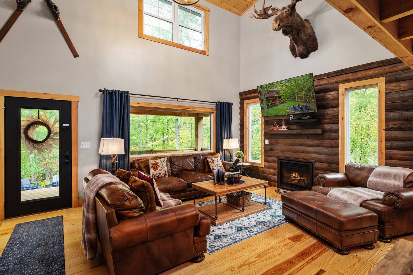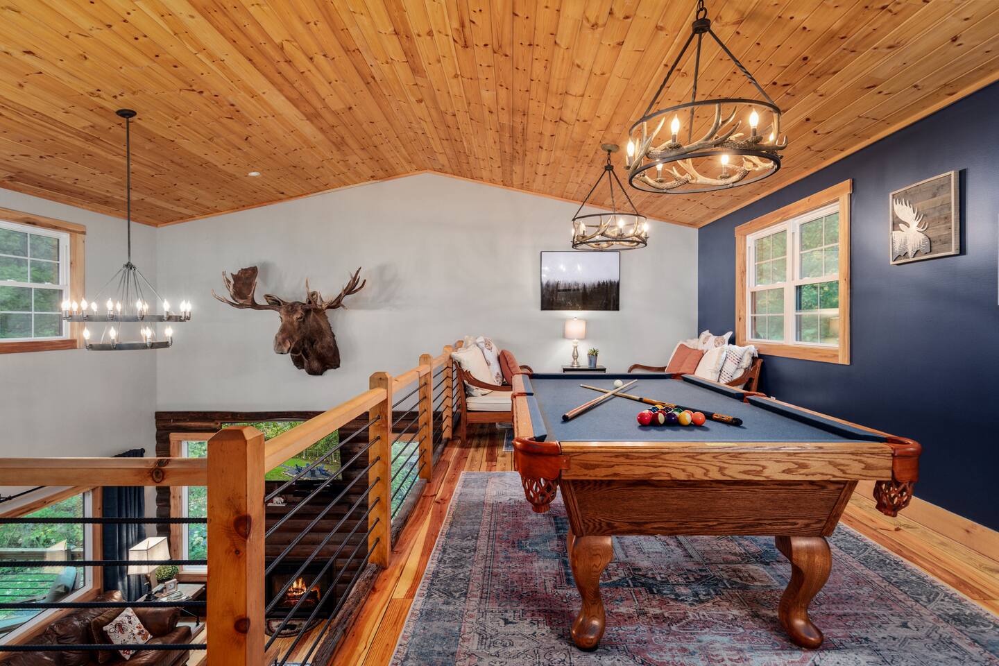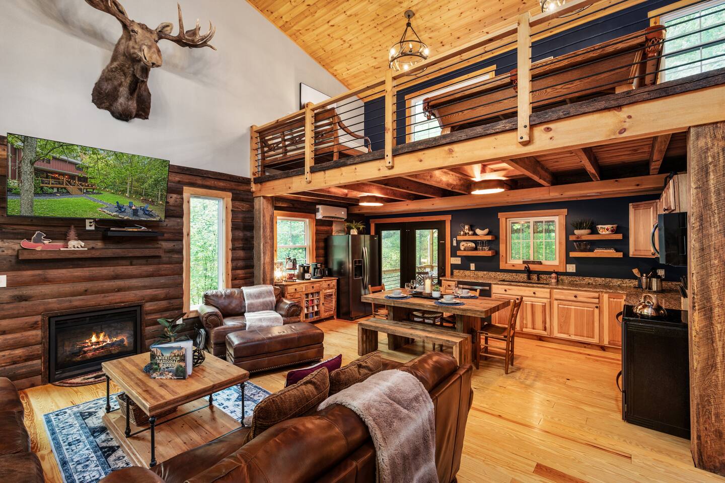 MOOSE LODGE AT A GLANCE: LEVEL ONE: ~Two story open family room with comfy leather furniture ~ Large chefs kitchen with supplies for cooking all meals ~ Queen bedroom with access to hall bath ~ Duo Bunkbed (twin over double) ~ One Full bath - shower tub combo ~Full laundry facilities LEVEL TWO: ~ Owners Suite: KING Bedroom with side sitting chair and connected full bathroom with walk in shower and 2 bowl sink ~Hall access to master bathroom ~ 2 TWINS: Loft day beds for additional sleeping ~GAME LOFT with pool table and seating Other Amenities: ~Cozy indoor fireplace ~Outdoor fire-pit under the stars ~ Firewood provided ~ Bed and bath linens provided ~ Stocked cooking kitchen, plenty of dishes and small wares ~ Propane grill - propane provided ~ Hot Tub under the stars open year around ~ DOG friendly upon owner APPROVAL ~ Pool Table and board games ~ Large screened in porch with patio table ~ Large front porch with swing and seating ~ Keurig, 12 Cup Brewer, coffee grinder ~Wifi - satellite only ~ Large Library of DVDs If you’re dreaming of peacefulness and privacy, Moose Lodge is the perfect escape. This brand-new cabin blends high-end finishes with the cozy, inviting atmosphere that makes you never want to leave. Unwind on the screened-in porch, soak in the hot tub, challenge friends to a game of pool, or gather around the fire pit. Just 4 miles from the attractions of Berkeley Springs, you’ll be close to everything yet feel miles away from it all. Step inside this thoughtfully designed retreat, where every detail is crafted for your comfort. Relax from the moment you arrive and feel the warmth of southern hospitality. Luxurious finishes and plush furnishings, including 1000-count Brazilian bed sheets, ensure a restful stay. Spend long nights around a crackling campfire, soaking in the beauty of Berkeley Springs, WV. Who will make the first break in a game of pool? Challenge your friends to a friendly tournament and watch the hours fly by. It’s easy to lose track of time in this cabin, especially once you sink into the sumptuous bedding. No need to worry about packing sheets or towels—we’ve got it all covered. All you need to do is arrive and start your getaway! "Just book it! Private, pool table, hot tub, impeccably clean, comfy beds/couches, awesome table for meals/games. We had the best weekend! You feel so far away from everything, only 2 miles from town w cute shops/cafes and friendly people! I would 100% stay here again-one of the best places I’ve stayed! Don’t even question it, if it’s available, book it!" ~Corrine, 5 star guest review "We booked this beautiful cabin for a fall escape into the mountains. The cabin is better than advertised, in an ideal location. We rode horses in town and hit the local brew pubs, retiring at night for the campfire. We would highly recommend this property." ~Todd, 5 star review 〰️〰️〰️〰️〰️〰️〰️〰️〰️〰️〰️〰️〰️〰️〰️〰️ 🌼Why BERKELEY SPRINGS?🌼 〰️〰️〰️〰️〰️〰️〰️〰️〰️〰️〰️〰️〰️〰️〰️〰️ One of Americas TOP 10 Small Towns 🪴renowned natural mineral springs 🪷spas, salt caves, and roman baths 🎨unique artistic culture, and a place for unmatched respite and relaxation 🍻Guests fav: Berkeley Springs Brewery 🥇award winning dining for local eats 🛍️eclectic artisan shopping 👣Cacapon State Park: 5 miles, hiking, biking, highest area overlook@2300ft, picnic areas, swimming, beach, spa, horseback riding, skeet shooting , and more 🎒Area events abound-weekly live music, artisan festivals, local markets, parades, craft shows, Cocoa Crawl, Apple Butter Festival, so much more. 🏃🏽♀️Hiking and biking trails for all skill levels 🛶Water sports - kayak, tubing, river swimming ⛳️GOLF: 4 nationally rank courses 🎿Ski Whitetail only 30minutes ⭐️⭐️⭐️⭐️⭐️”The absolute BEST Airbnb I have ever stayed in! Spotless, Comfortable, and Beautiful! This house and host can't be beat!" ~Erin 〰️〰️〰️〰️〰️〰️〰️〰️〰️〰️〰️〰️〰️〰️〰️〰️ 🎟️Nearby Attractions+Day Trips🎟️ 〰️〰️〰️〰️〰️〰️〰️〰️〰️〰️〰️〰️〰️〰️〰️〰️ 📷Harpers Ferry National Park - a beautiful and easy 1 hour drive. 🔭Shenandoah National Park 🕯️Antietam National Battlefield 🇺🇸Washington, DC! A short two hours! 🪦Gettysburg National Park, PA ~ 90 min trip C&O Canal National Park ✈️Flight 93 National Memorial 🔦Luray Caverns 🛝Waterparks "My wife and I had an incredible time at Moose Lodge! Everything was so comfortable, relaxed, and peaceful. The cabin has a remote feel but not far from places to eat or things to do. We couldn't get over how quiet it was. We spent many hours sitting on the screened in porch, the hot tub, at the fire pit gazing at the stars.We slept like logs in the very comfortable king-size bed. We left so refreshed. Do yourself a favor and book MOOSE LODGE" ~Ryan 5 STAR Review "Katie's cabin on the mountain is absolutely gorgeous. It looks as though an interior designer had her way. If you're a foodie, this is the kitchen for you!" - Barbara, 5 Star review "This was an amazing place. It was really cozy. It was as described! It was a fun setting for friends to be together for Friendsgiving. The fire pit was very nicely stocked and placed. It was well decorated and was very tasteful. This was completely worth the money! Berkeley springs was very convenient as well if you forget an item or two." ~ Angie, 5 star review Your Dates Booked? We have 4 more Luxury Cabins in Berkeley Springs: ~NEED MORE SPACE? Check out our 4 Bed 4 Bath Chalet Just Down the Street https://www.airbnb.com/rooms/706424441907600360?guests=1&adults=1&s=67&unique_share_id=4e007950-9ec9-44da-b059-3666885439f3 ~NEED a MOUNTAIN TOP VIEW? Grab our 5 Bed 3 Full bath LODGE https://www.airbnb.com/rooms/7628567455174127